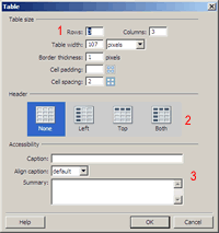 dialogue box, choose the number of rows and columns (1).